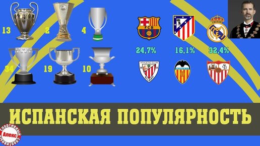 Самый популярный клуб в Испании. Реал, Барселона, Валенсия, Севилья, Атлетико.