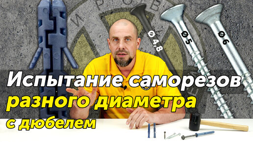 Испытание саморезов разного диаметра с дюбелем. Как влияет диаметр шурупа на нагрузки дюбеля?