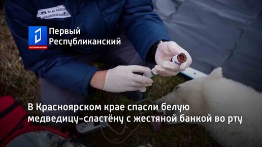 В Красноярском крае спасли белую медведицу-сластёну с жестяной банкой во рту