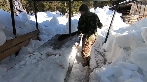 Поездка в зимний лес. Скинули снег с крыши