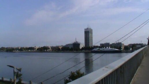 Идем по Вантовому мосту через Даугаву. 2018 г. Латвия, Рига.