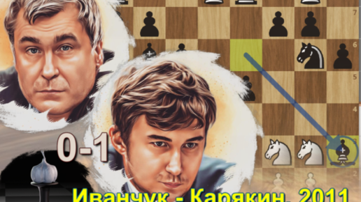 Игра Сергея Карякина (черные) смотрится заманчиво. Белыми играет сильный В. Иванчук и проигрывает "итальянку" молодому бойцу в Румынии, 2011