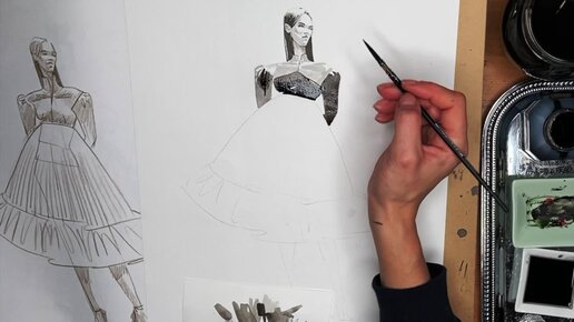 Эскиз платья. Школа скетчинга для дизайнеров одежды, владельцев ателье и конструкторов.