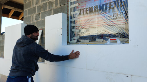 Утепление керамзитобетонного дома пенополистиролом ППС16ф 150мм, приклейка Гешек на углы оконных проёмов, СФТК Мокрый Фасад, Ceresit CT83