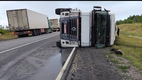 Дальнобойщик решил перекусить на ходу и перевернул фуру … 🤦♂️