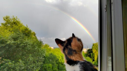 Фантастическая картина: солнце, тучи, дождь, двойная радуга. И всё одновременно!.