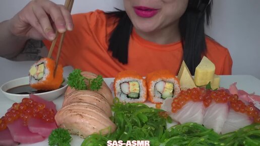 ASMR СУШИ (ЗВУКИ ЕДЫ) БЕЗ РАЗГОВОРОВ SAS-ASMR
