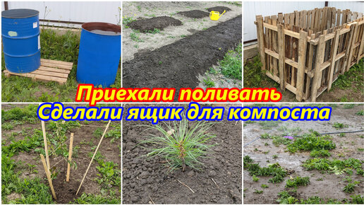 # 79. Приехали поливать. Всё пересохло за 3 дня. Сильный ветер. Подвязали деревья. Всходит картошка. Сделали компостный ящик. Июль 2022 г