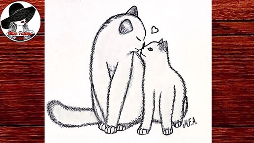 Рисуем Карандашом КОШКУ С КОТЁНКОМ Очень Легко. Простой рисунок карандашом
