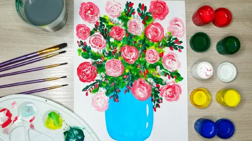 Шикарный букет роз. Рисуем ватными палочками. Необычное рисование