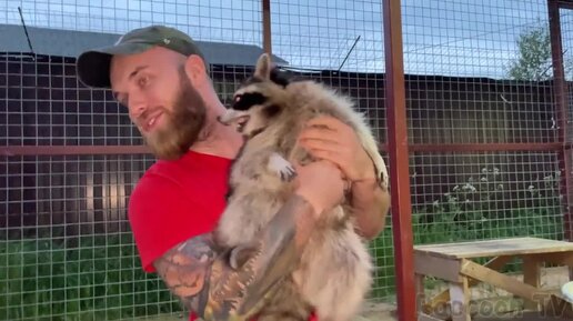 Изворотливый енот нападает на человека