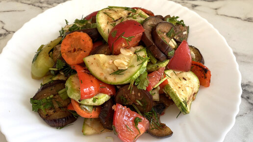 Жареный салат с овощами | Вкусный теплый салат из баклажанов, помидоров, кабачков | Рецепт салата