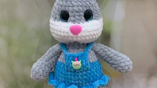Вязаный зайчик из плюшевой пряжи. Мягкая игрушка амигуруми крючком из плюшевой пряжи.