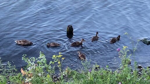 семья на вечерней кормёшке #утка #утята #уткасутятами #