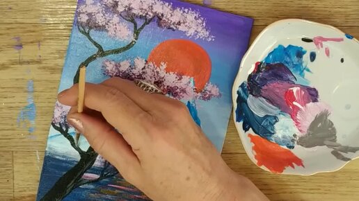Япония Солнце Сакура Как нарисовать пейзаж