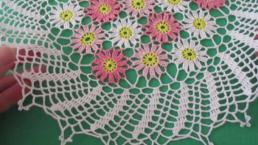 САЛФЕТКА "МАРГАРИТКИ" С ЦВЕТОЧНЫМИ МОТИВАМИ КРЮЧКОМ - ПРОСТАЯ И ОЧЕНЬ НЕЖНАЯ. ЧАСТЬ 1