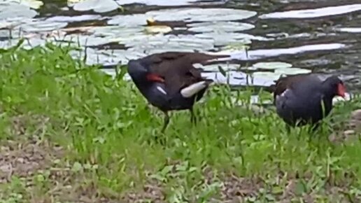 Редкие водоплавающие птицы камышницы или болотные курочки