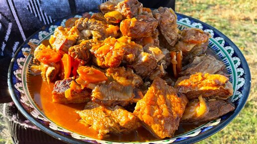 КАК ПРИГОТОВИТЬ ГОВЯЖЬИ РЕБРА? ТОМЛЕНЫЕ ГОВЯЖЬИ РЕБРА В ПОМИДОРАХ В КАЗАНЕ НА КОСТРЕ