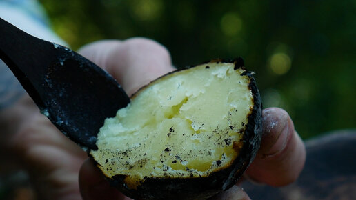 Мягкие и вкусные сырно-картофельные зразы на костре из запеченной картошки