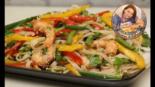 Тайский салат из креветок и рисовой лапши просто БОМБИЧЕСКИ вкусный, любители экзотики точно оценят