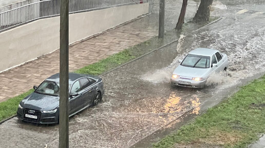На Самару обрушился залповый ливень и гроза Затопило дороги 25 июля 2022