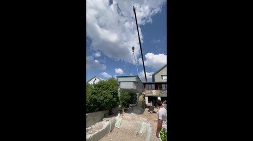 Сложная выгрузка композитного бассейна, поднимаем чашу выше крыши дома !