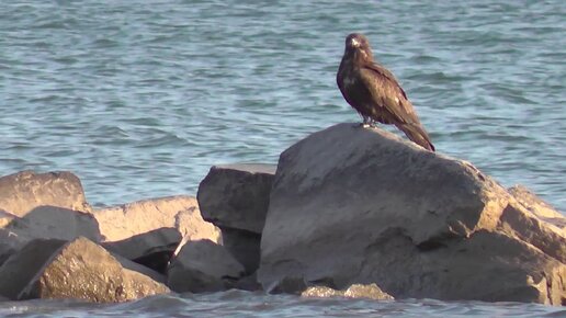 Коршун. Обское море шум воды коршун сидит на камнях и позирует перед камерой. Птицы Сибири.