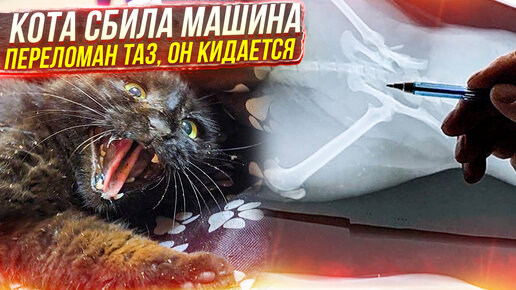 Кот не может встать и кидается, сбила машина.