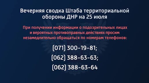 Вечерняя сводка штаба территориальной обороны ДНР на 25 июля 2022 года