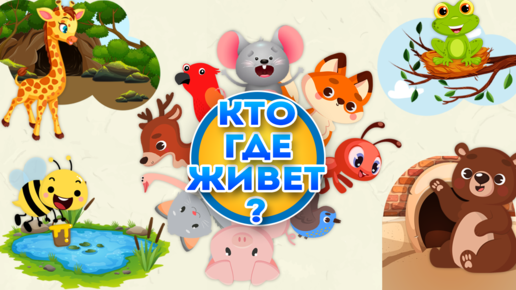 Кто где живет - Животные для детей - Мультик игра для самых маленьких