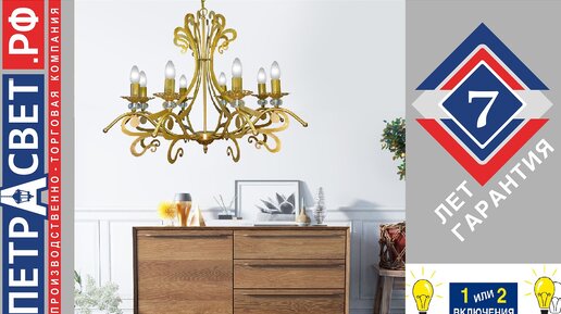 Обзор люстры подвесной в большую комнату 8 ламп золото с патиной золото дизайнерская ПЕТРАСВЕТ S3134-8 на 2 включения. 7 лет гарантии. 2021