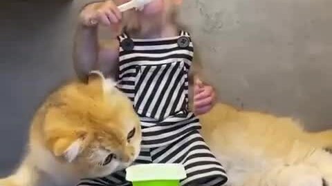 Крепкая и бесконечно трогательная ДРУЖБА: малышка ОБЕЗЬЯНКА и ее друг КОТЕНОК😻