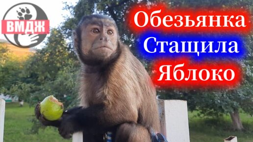 Маленькая домашняя обезьянка Алекса стащила яблоко в школьном саду!