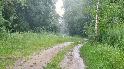 Красивый летний дождь в лесу. Живые звуки природы. Льет как из ведра дождь на лесной дороге, шум и звуки ливня. Красивая природа для души.