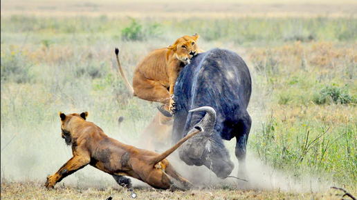 Слишком Безрассудно| Упрямый Лев Был Окружен И Замучен До Смерти Большими Буйволами Во Время Охоты !