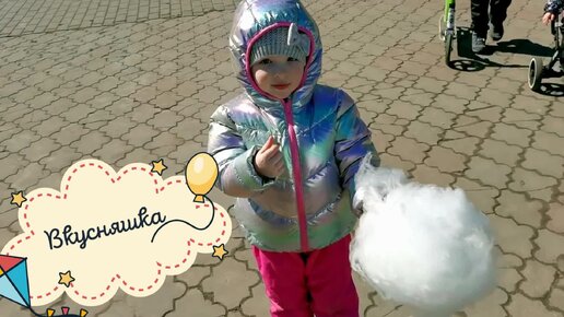 Ксюша с папой в парке катаются на аттракционах