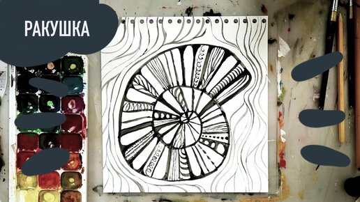 Как нарисовать ракушку одним цветом, пошаговый урок для детей и взрослых