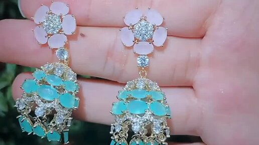 Позолоченные индийские серьги "Канти" с кристаллами Сваровски под опал. Ювелирная бижутерия ЛЮКС