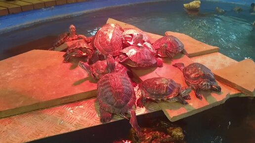Красноухие Черепахи.Черепахи живут в торговом центре Светофор в бассейне.