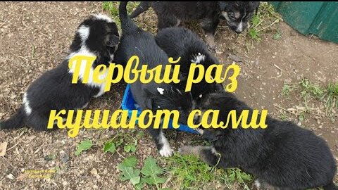 Щенки кушают и тут же засыпают