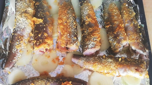 Великолепный хек "в шубке", запеченный на луковой подушке