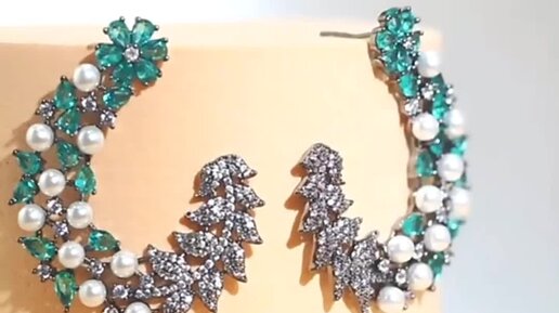Серьги с покрытием из чёрного золота с кристаллами Сваровски и бусинами. Ювелирная бижутерия класса люкс. Вечерние серьги