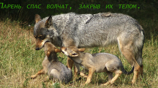 Охотники хотели выстрелить в волчат, но парень закрыл своим телом.