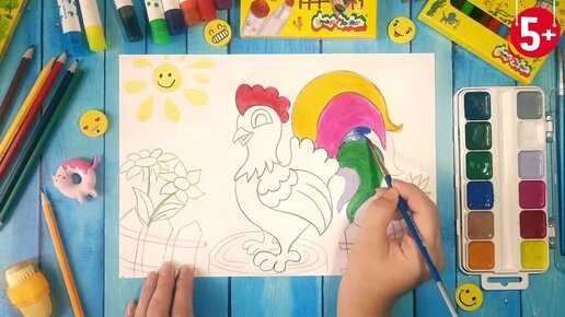 Рисуем Петушка акварелью Каляка-Маляка! ( МАСТЕР-КЛАСС)
