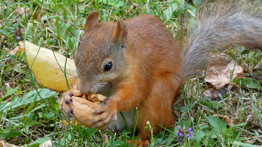 Угостили рыжего бельчонка орешком у Дворца Марли! Петергоф.