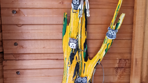 Из старой деревяшки и подручного материала сделала забавную ключницу с прикольными совятами!