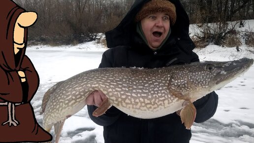 Трофейная щука на жерлицы еле пролезла в лунку Трофейная зимняя рыбалка