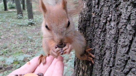 Бельчонок который голодал и всего боялся, окреп и отлично выглядит