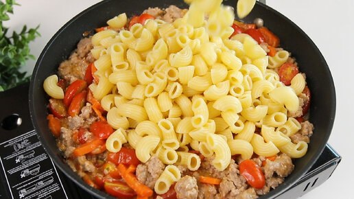 Пустые тарелки и просьбы добавки вам обеспечены! Настоящее объедение - фарш с макаронами, в сковороде. # 526