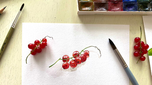 Рисуем красную смородину акварелью. Рисование онлайн для начинающих